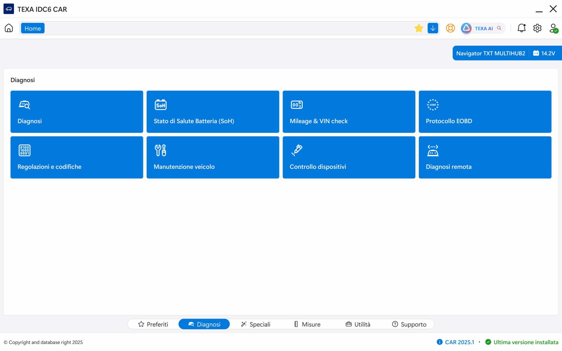 Le diagnostic “built-in” de TEXA permet de vérifier physiquement le fonctionnement des systèmes de charge, pendant le processus de charge.